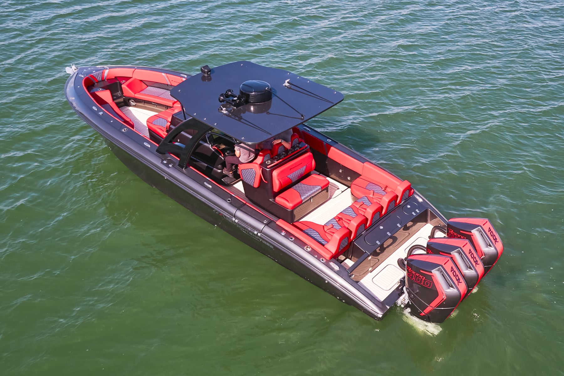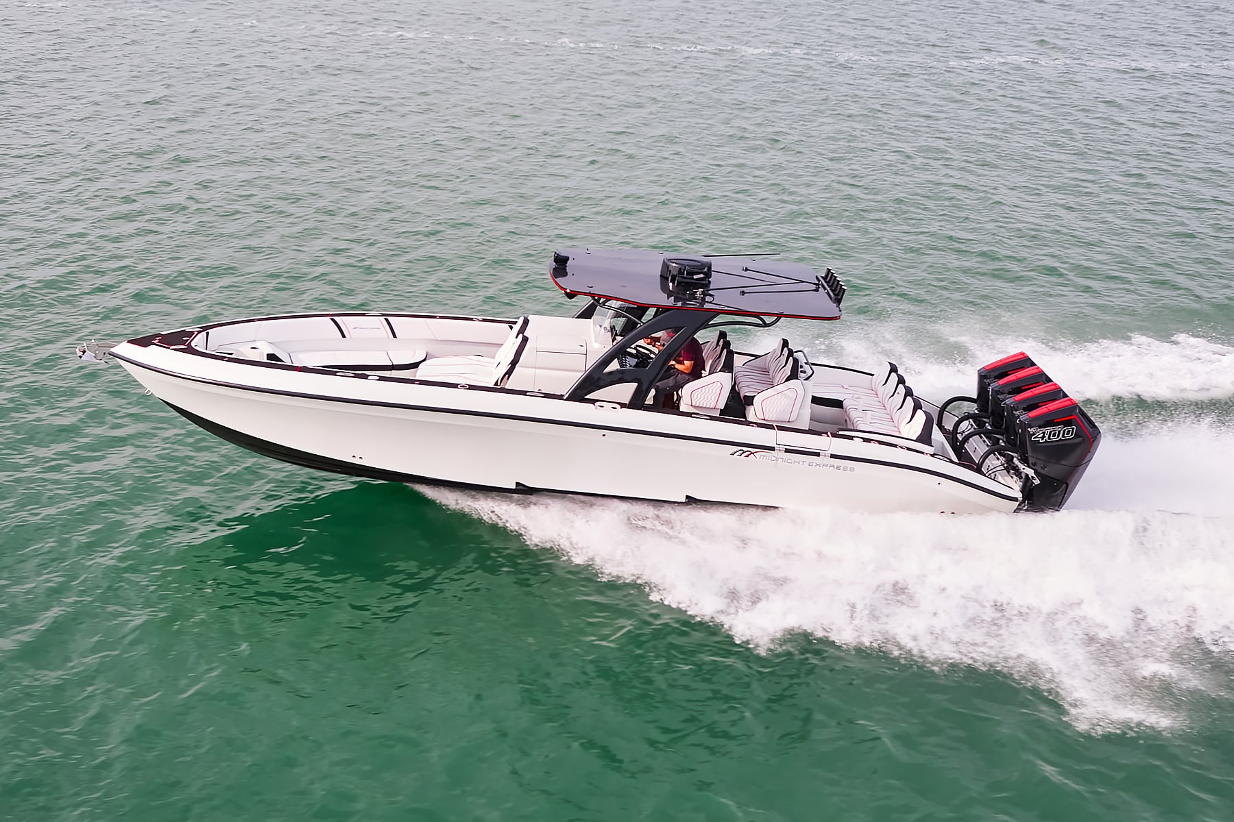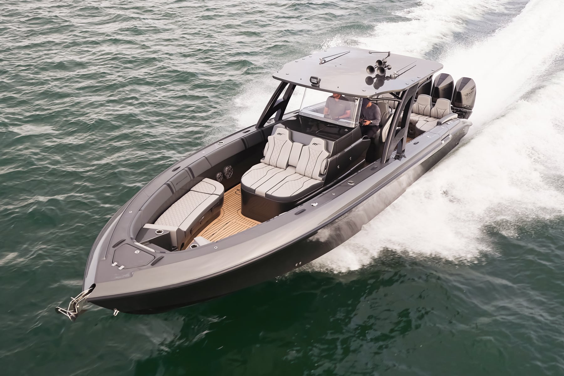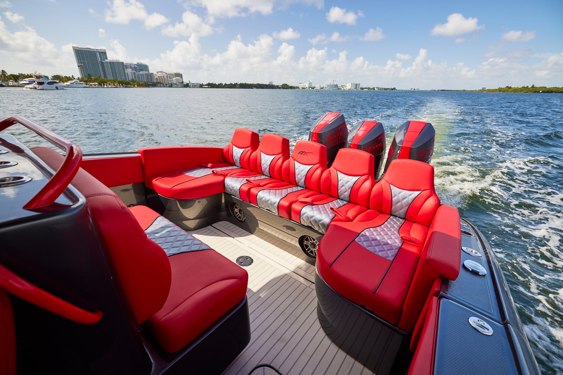 The 37′ Open can cruise easily at 40MPH+ with fuel efficiency of over 1.5 miles per gallon and achieve speeds upwards of 80MPH-90MPH+ depending on power configuration. We can configure your 37′ Open with triple or quads.