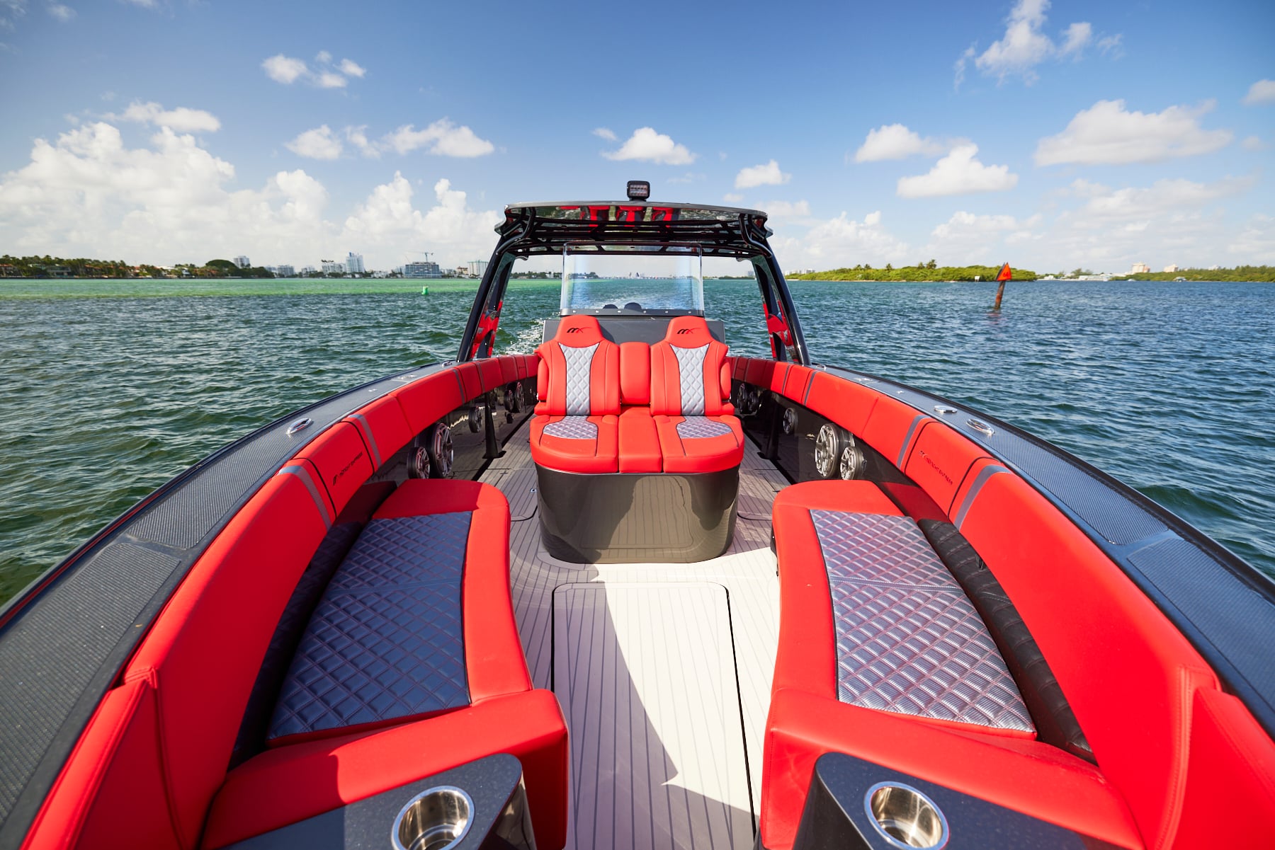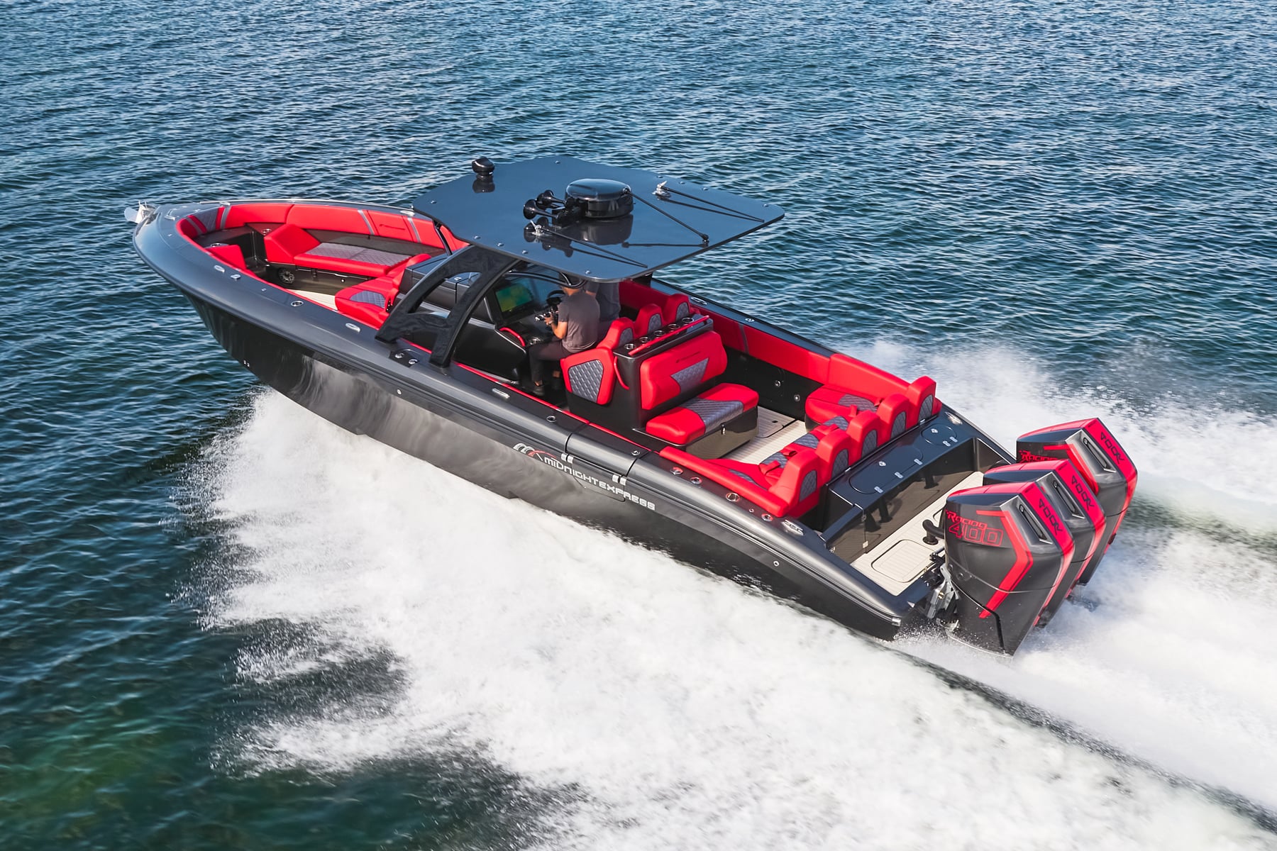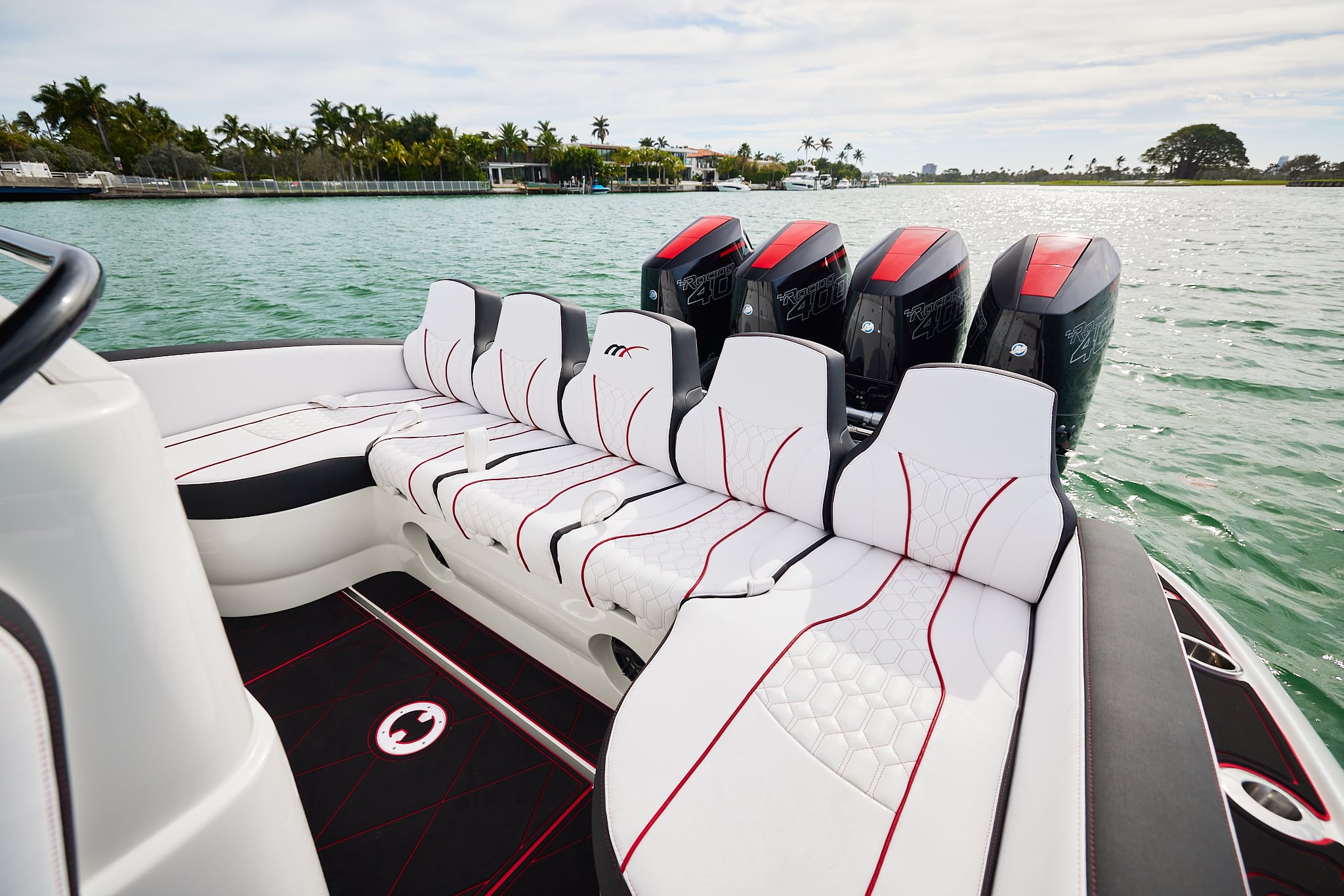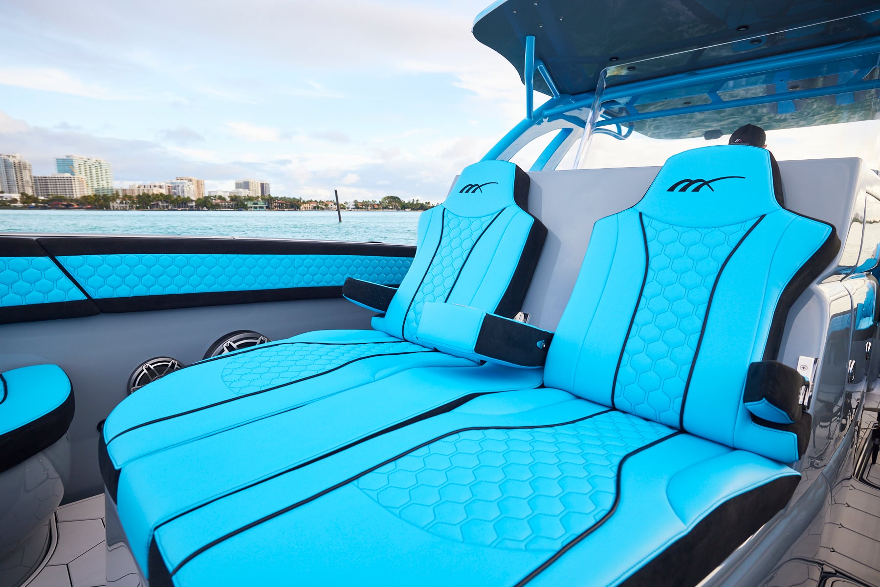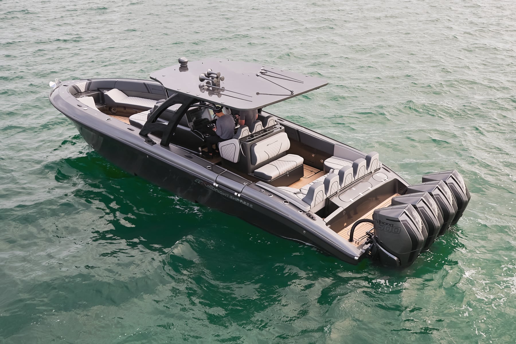 The 37′ Open can cruise easily at 40MPH+ with fuel efficiency of over 1.5 miles per gallon and achieve speeds upwards of 80MPH-90MPH+ depending on power configuration. We can configure your 37′ Open with triple or quads.