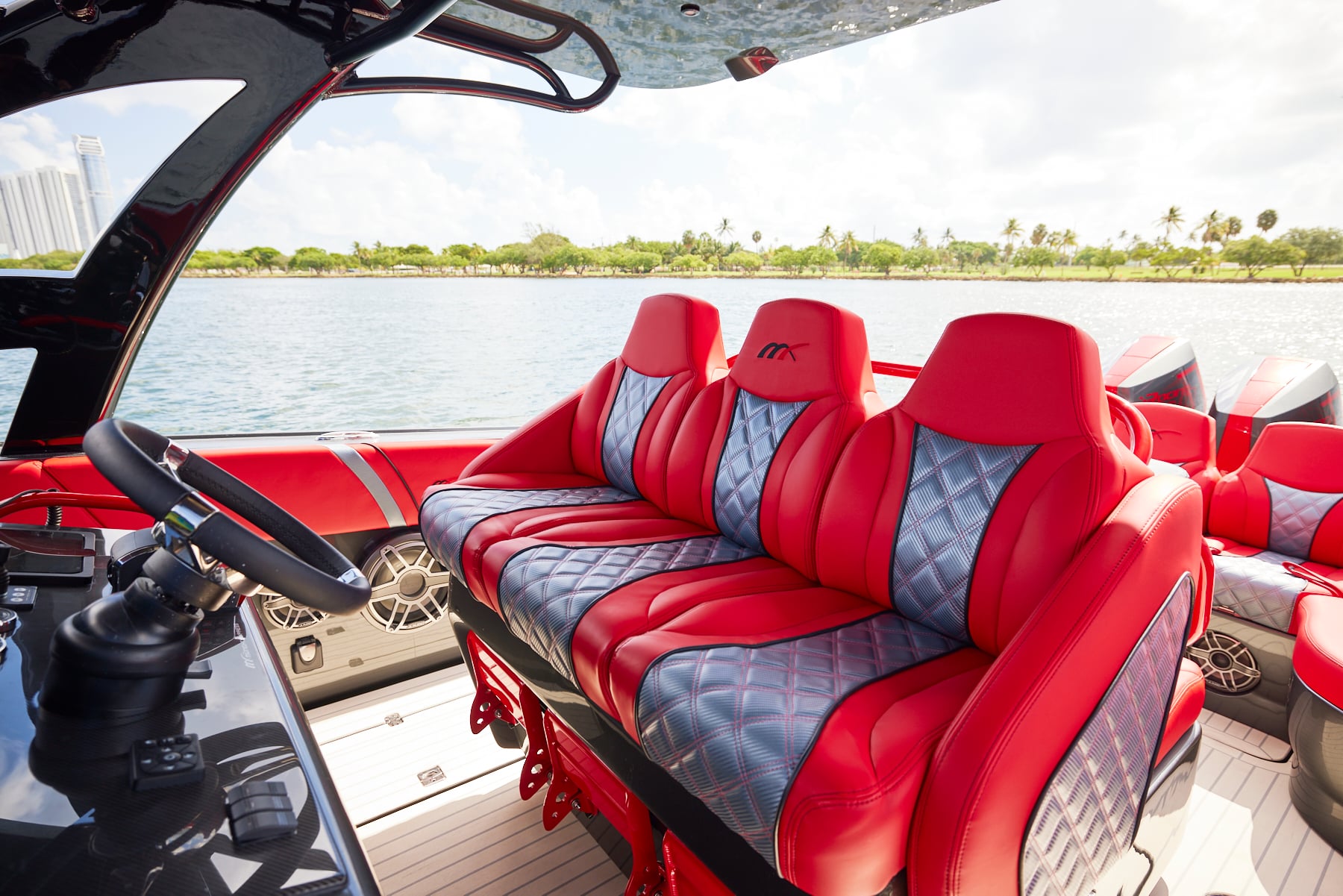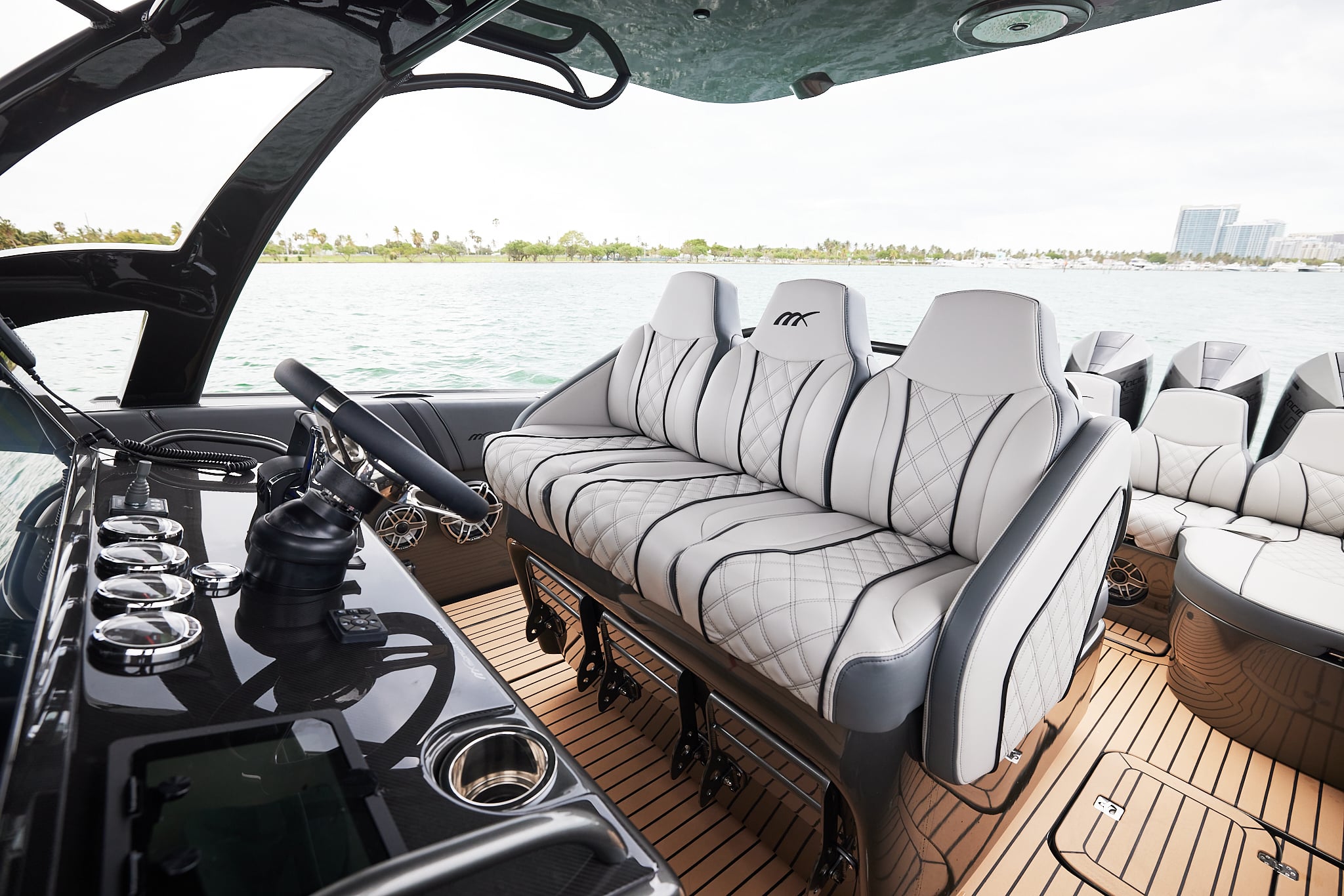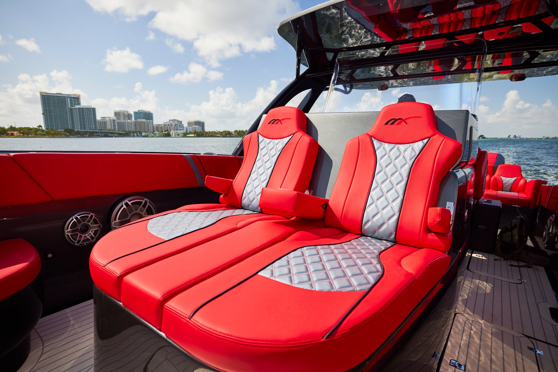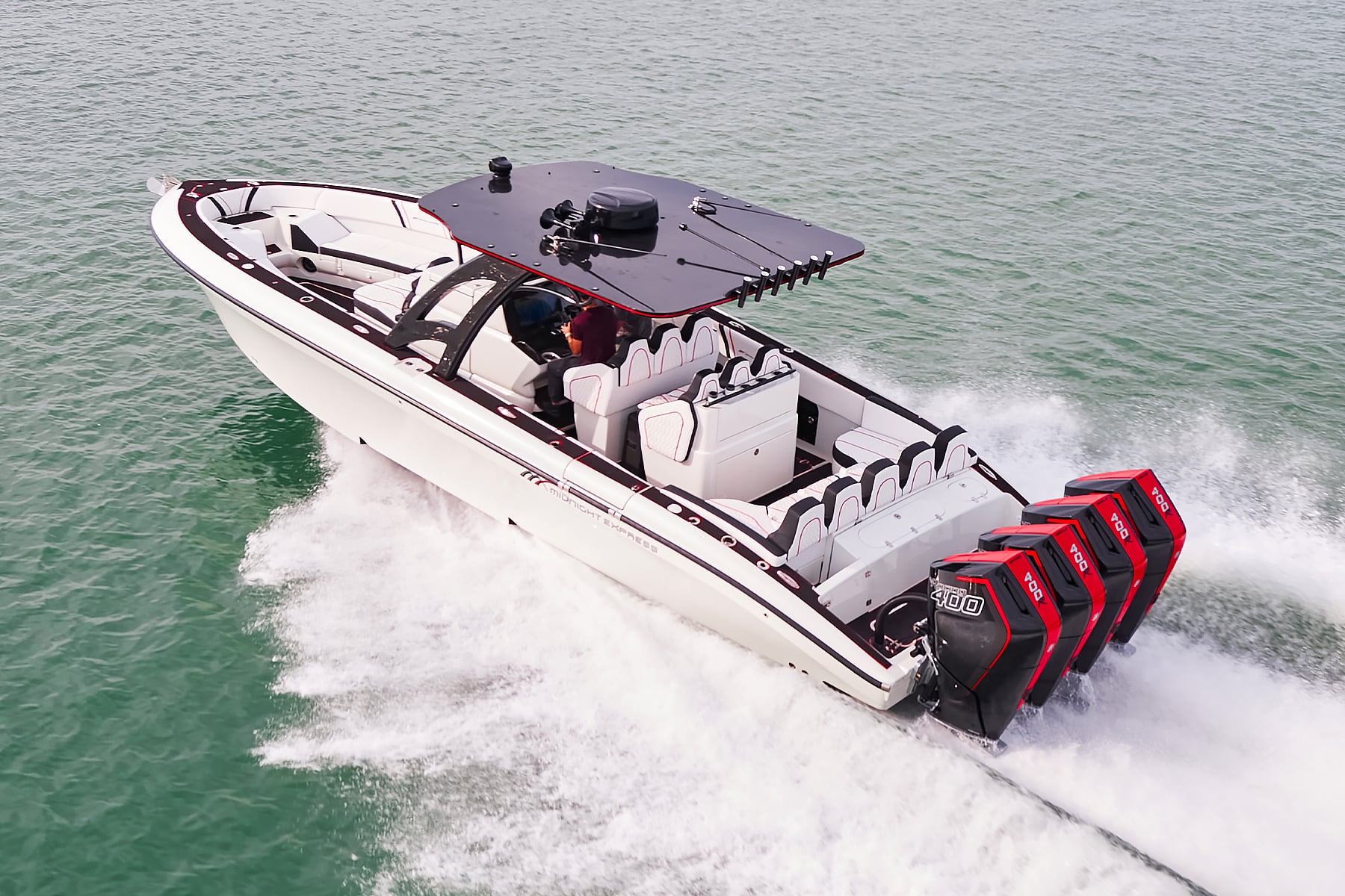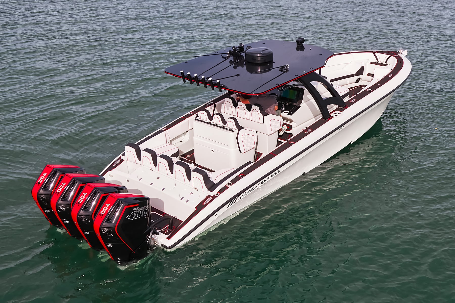 The 37′ Open can cruise easily at 40MPH+ with fuel efficiency of over 1.5 miles per gallon and achieve speeds upwards of 80MPH-90MPH+ depending on power configuration. We can configure your 37′ Open with triple or quads.