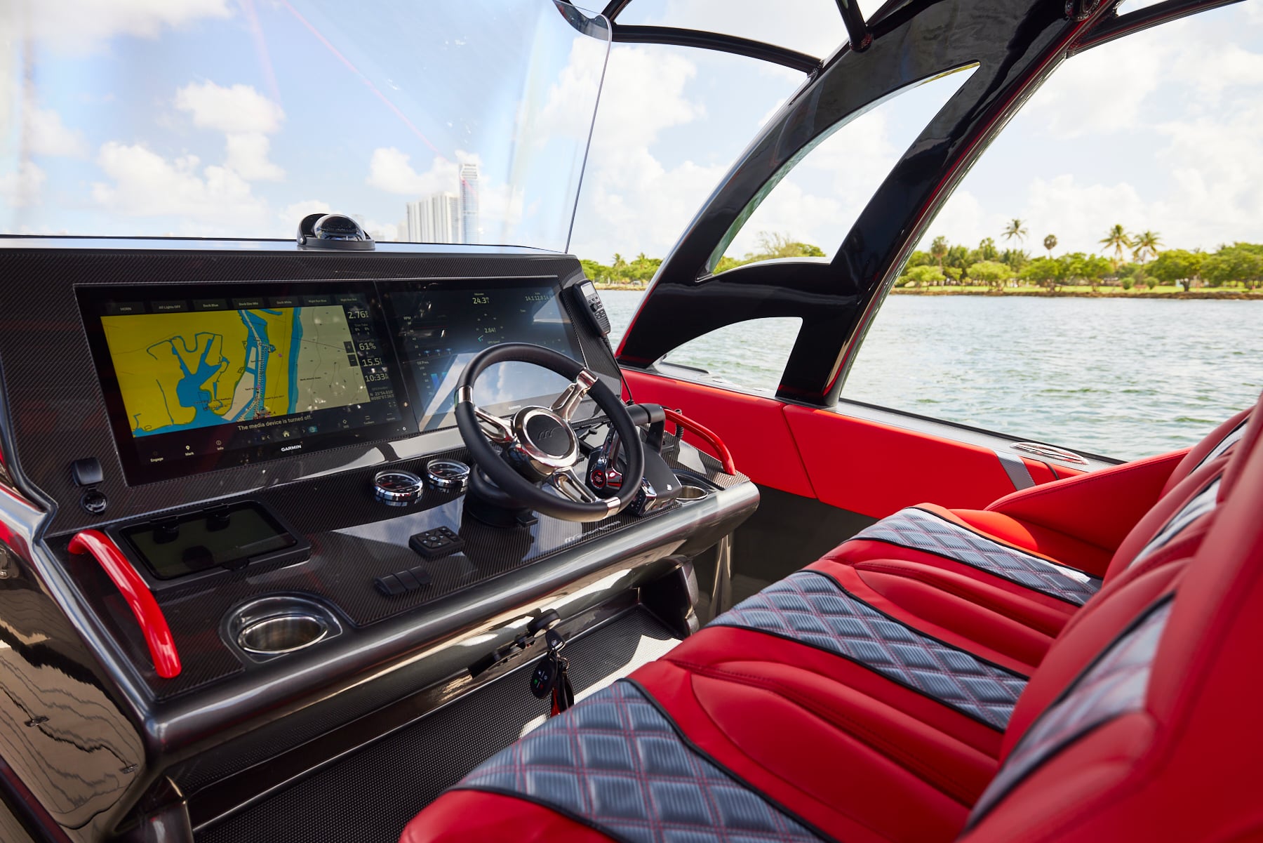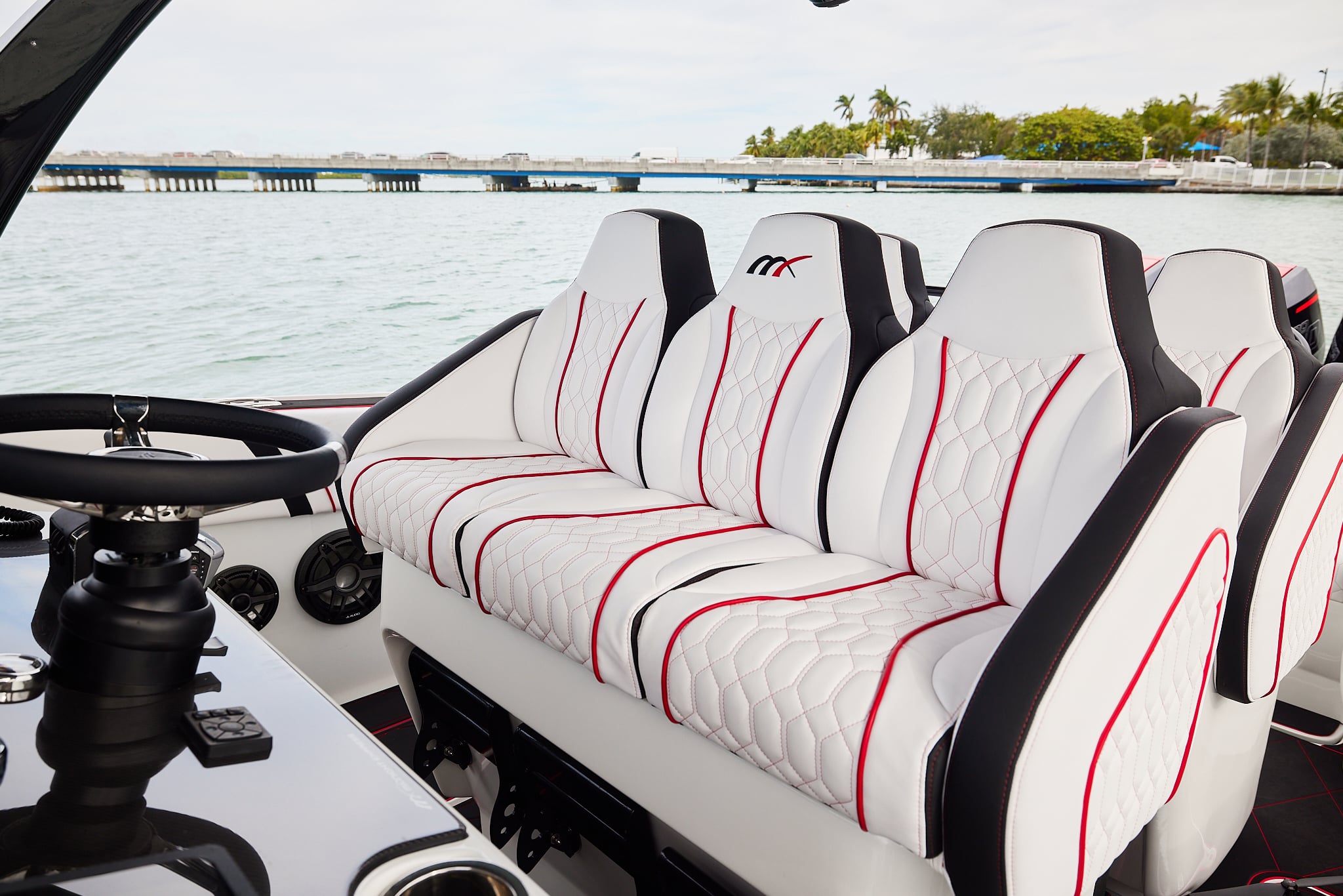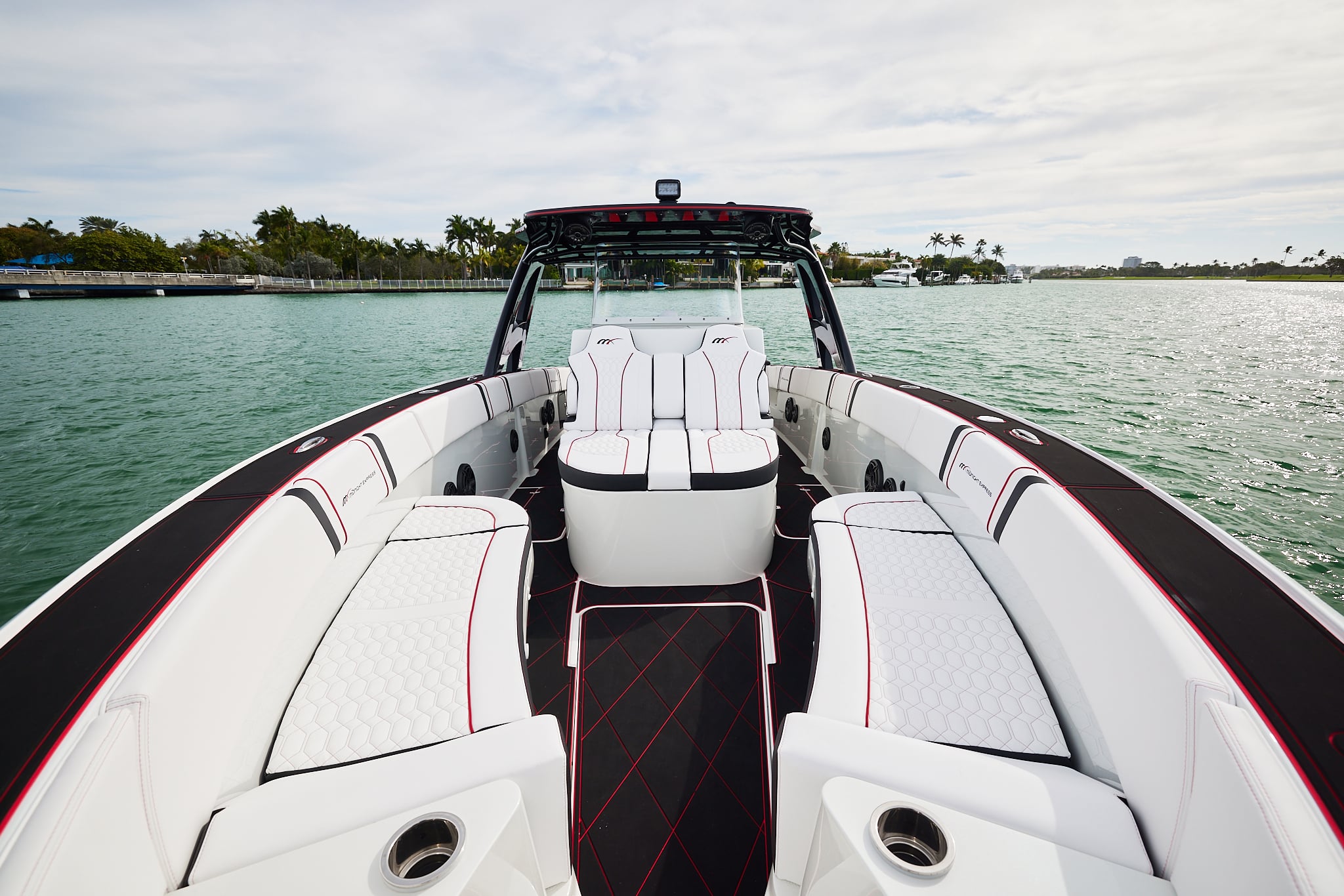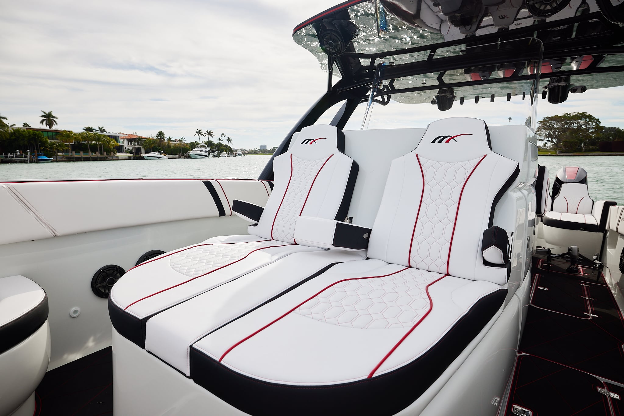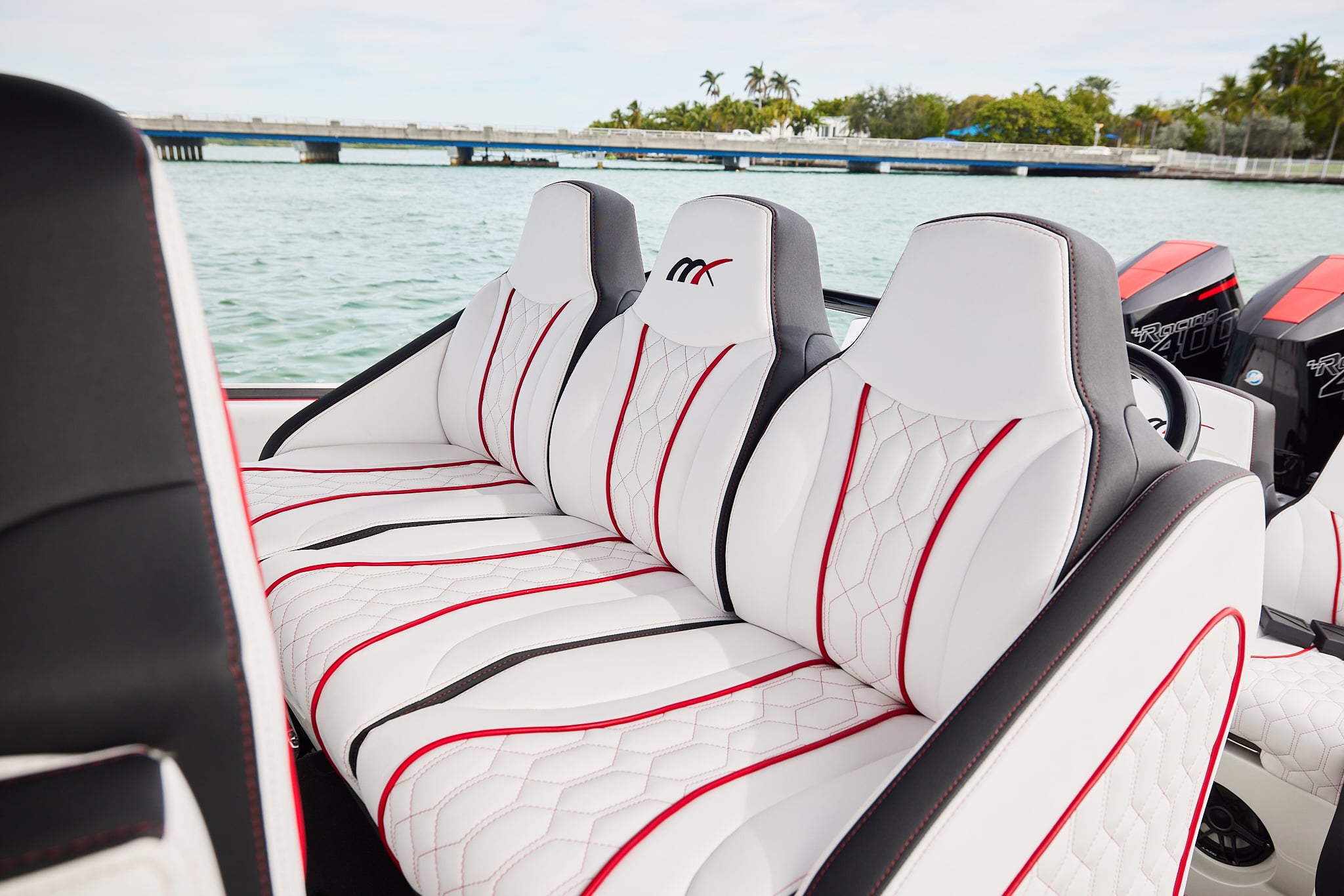 The 37′ Open can cruise easily at 40MPH+ with fuel efficiency of over 1.5 miles per gallon and achieve speeds upwards of 80MPH-90MPH+ depending on power configuration. We can configure your 37′ Open with triple or quads.