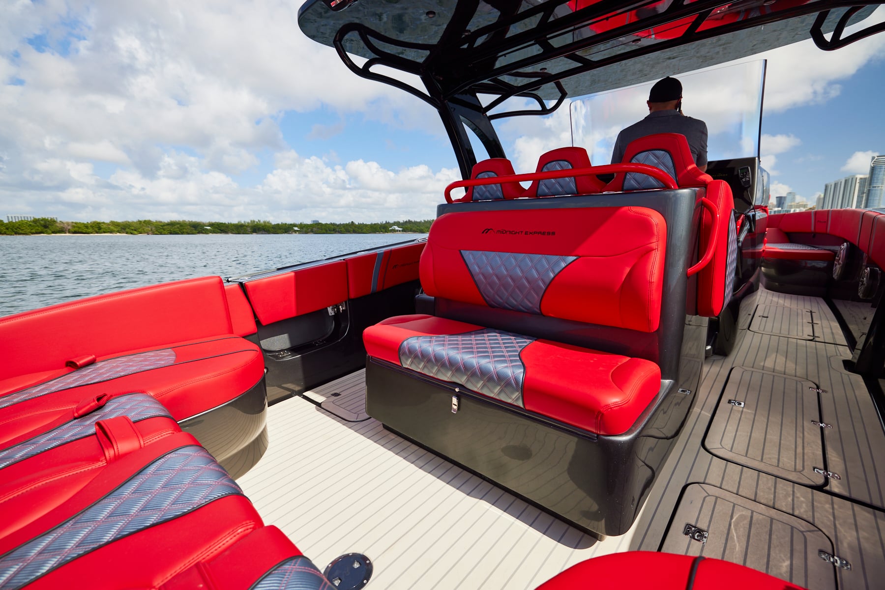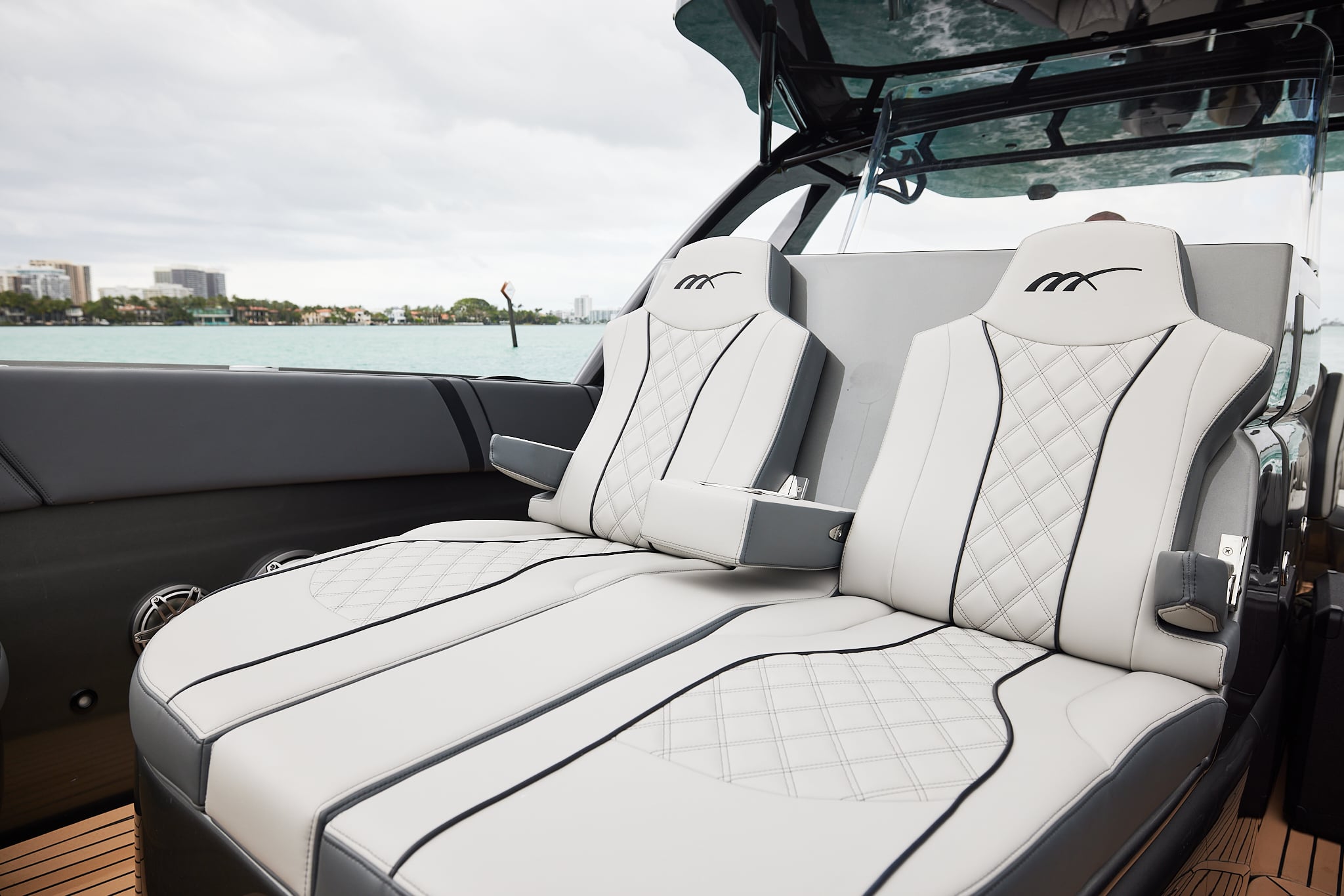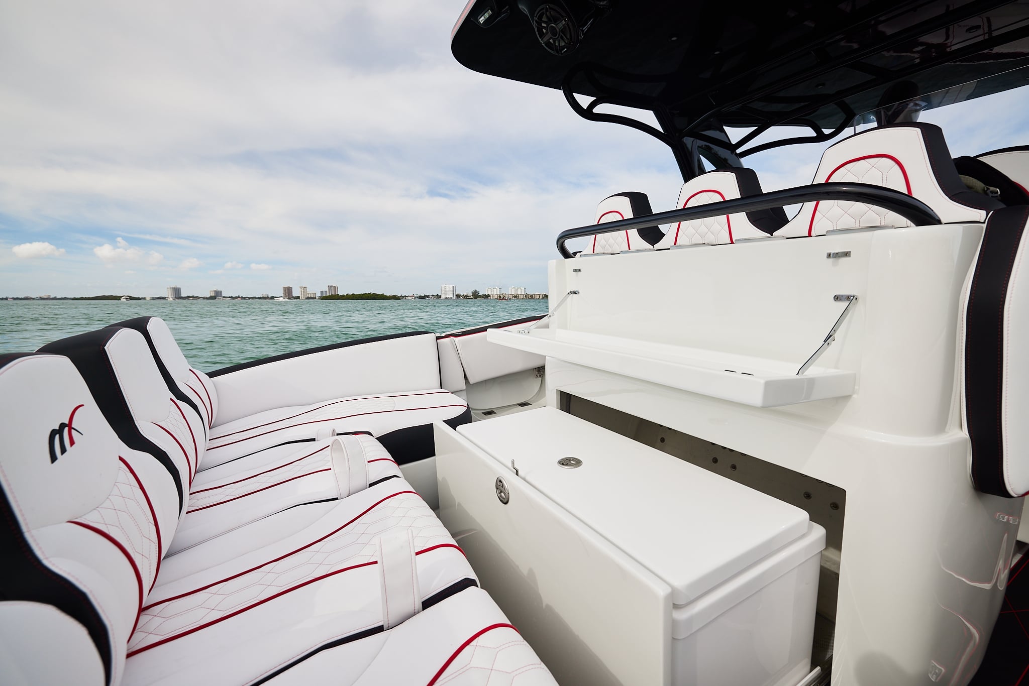 The console for the 37′ Open features the lounge for prime seating. Choose a single or double helm seat configuration, a rear facing seat or summer kitchen, the options become endless. Removable or fixed seating in both the aft and forward sections ensure the boat fits your every boating need.