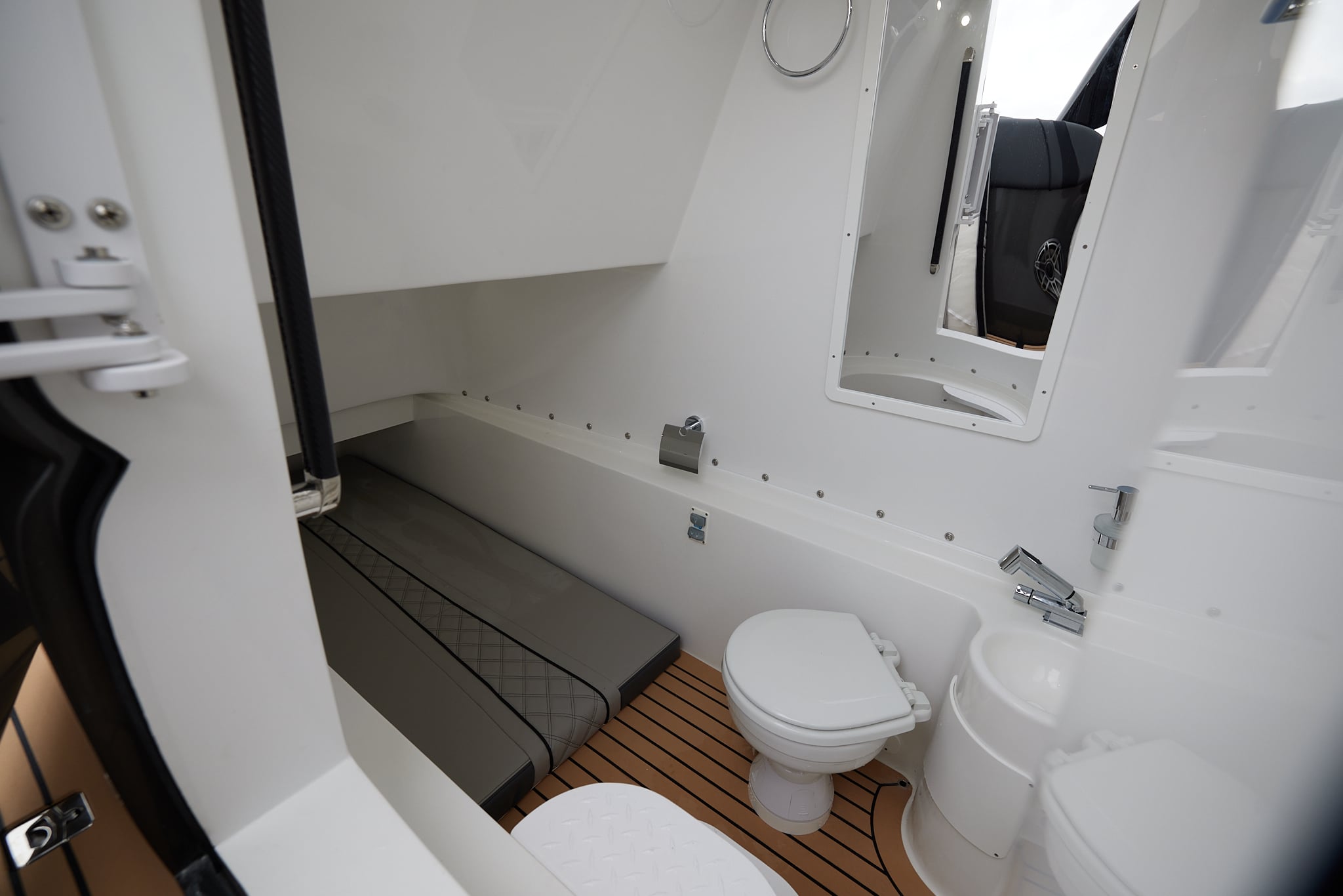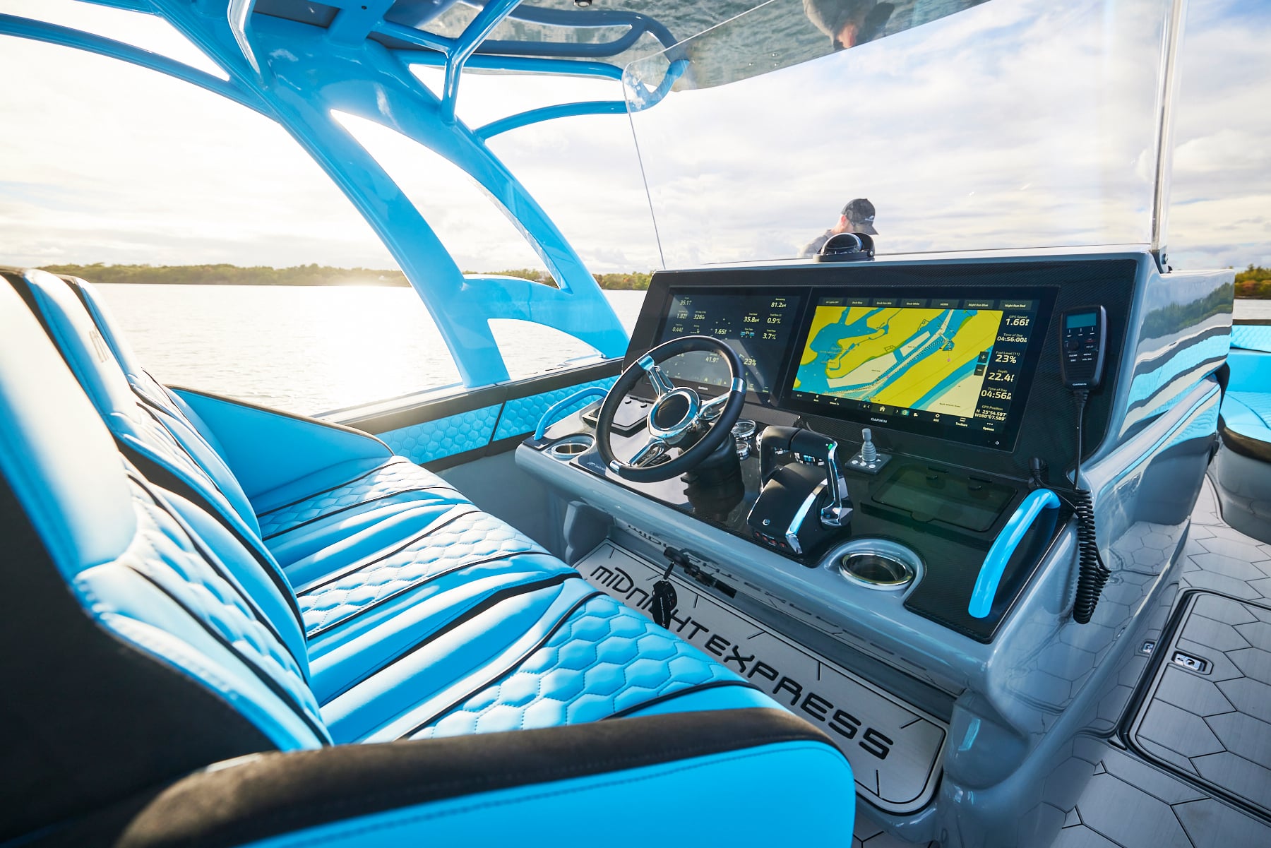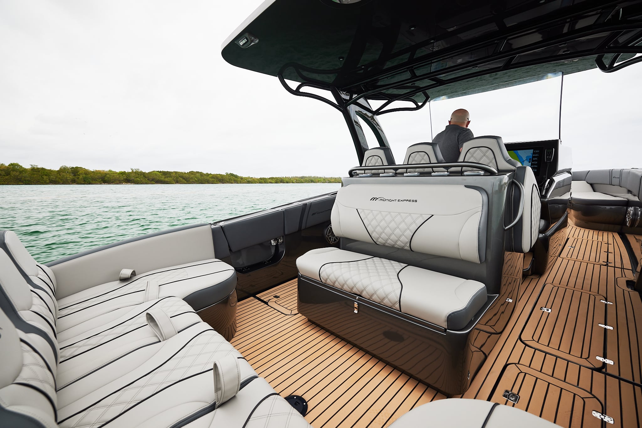 The 37′ Open allows for a full customization including colors, seating, electronics… you choose the design and layout that works for you. Optional Side Entry Dive Door, T-Top or Arch Top, full stand up head and shower in the console allow you ample storage and endless opportunities.